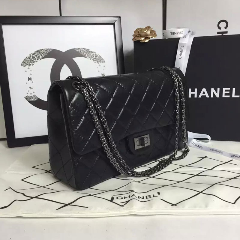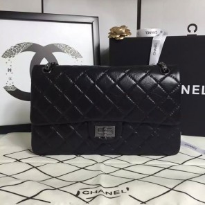 2016 Chanel Original Glazed Crackled Leather Classic Flap Bag A28668 Black