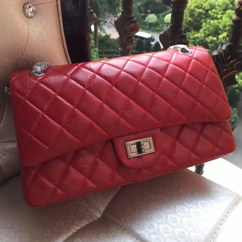 2016 Chanel Original Glazed Crackled Leather Classic Flap Bag A28668 Red