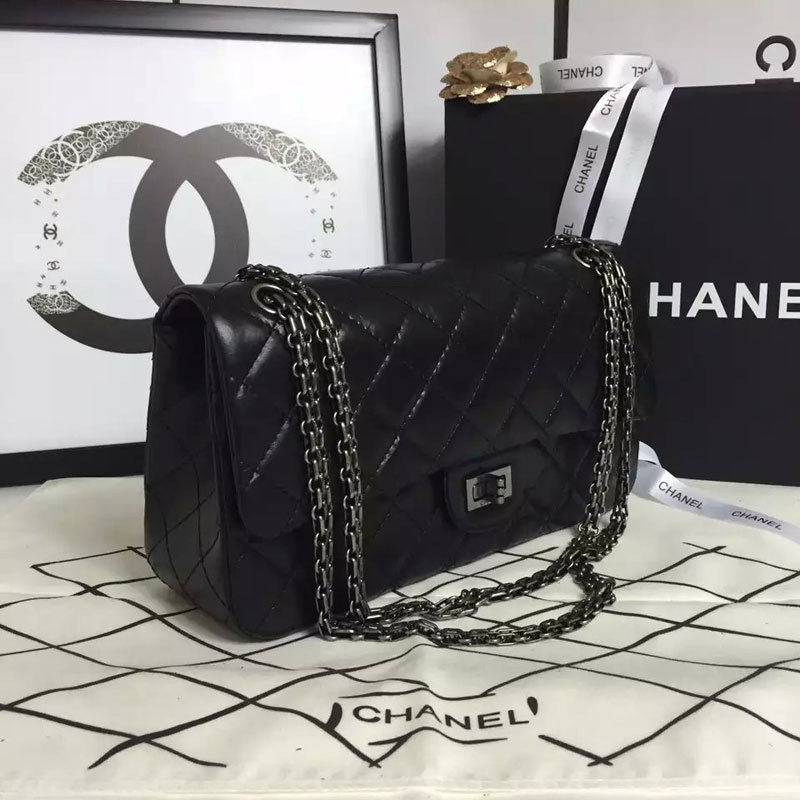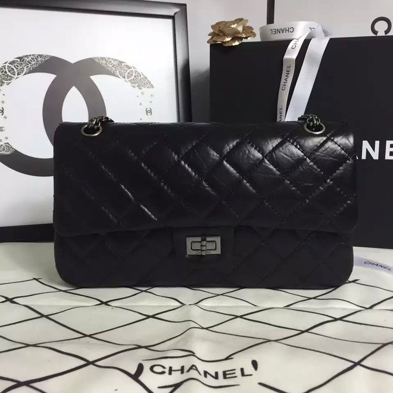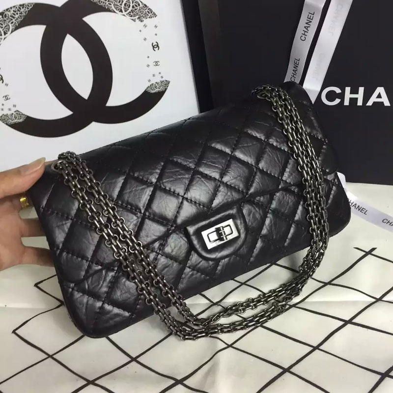 2016 Chanel Original Glazed Crackled Leather Classic Flap Bag A30227 Black