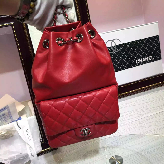 2016 Chanel Original Sheepskin Leather Backpack A94417 Red