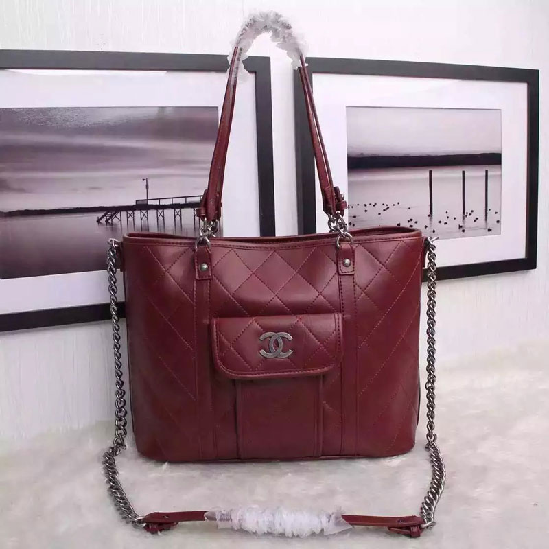 2016 Chanel Shopper Tote Bag Sheepskin Leather A4911 Claret