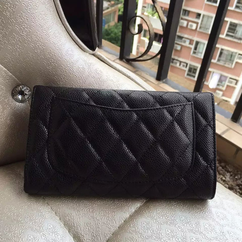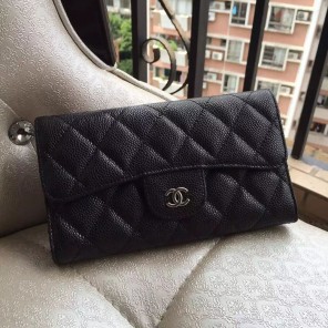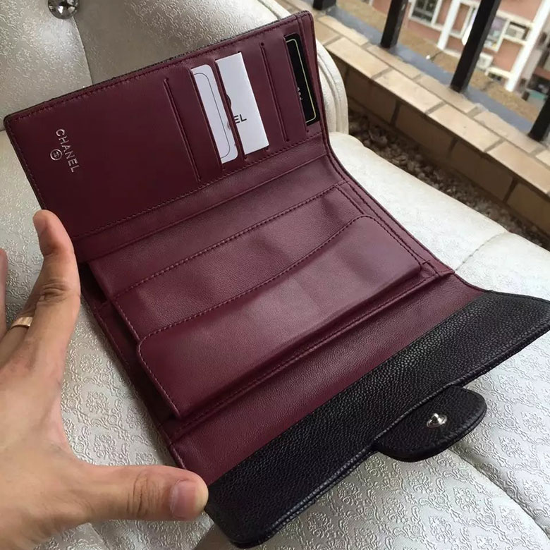 2016 Chanel Tri-Fold Wallet Black Original Caviar leather A31506 Silver