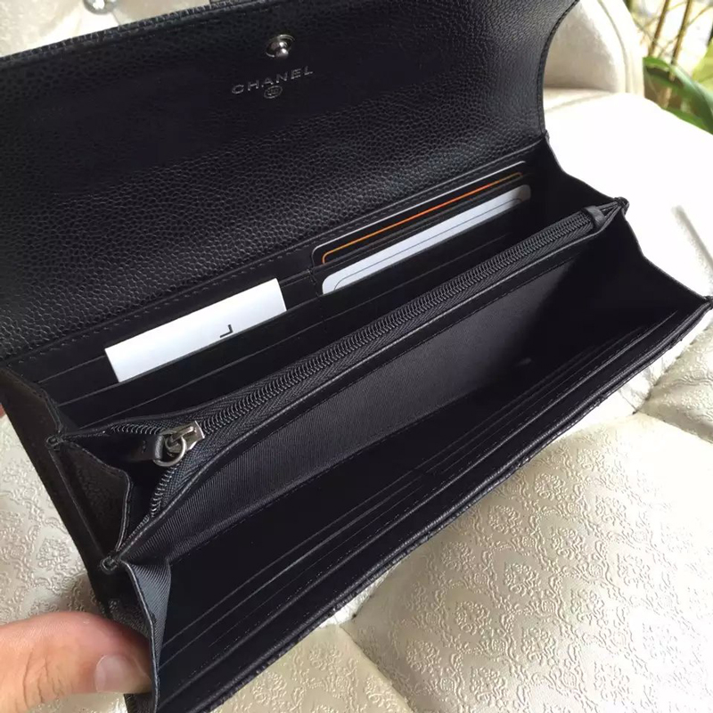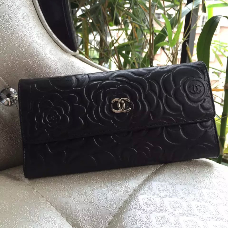 2016 Chanel Tri-Fold Wallet Original Lambskin Leather A50084 Black with Gold