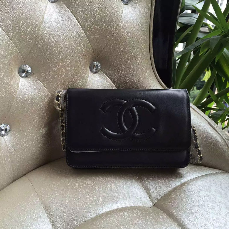 2016 Chanel WOC A33814 Black Original Caviar Leather Mini Flap Bag Gold