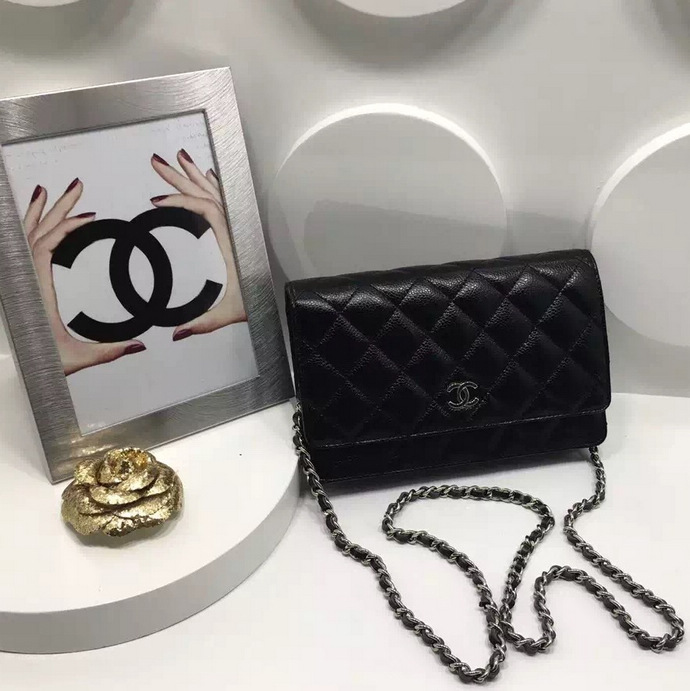 2016 Chanel WOC A33814 Black Original Caviar Leather Mini Flap Bag Silver