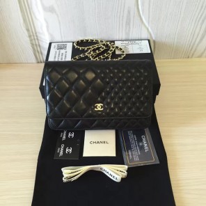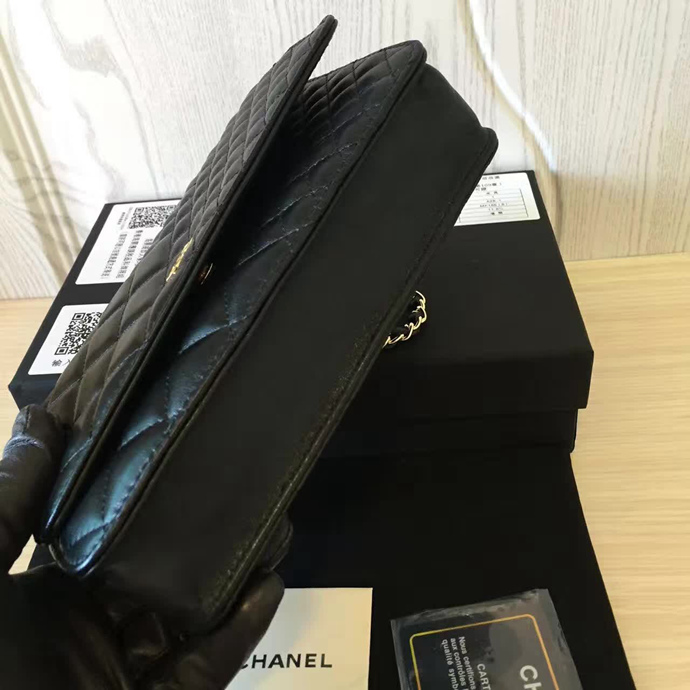 2016 Chanel WOC A33814 Black Original Sheepskin Leather Mini Flap Bag Gold