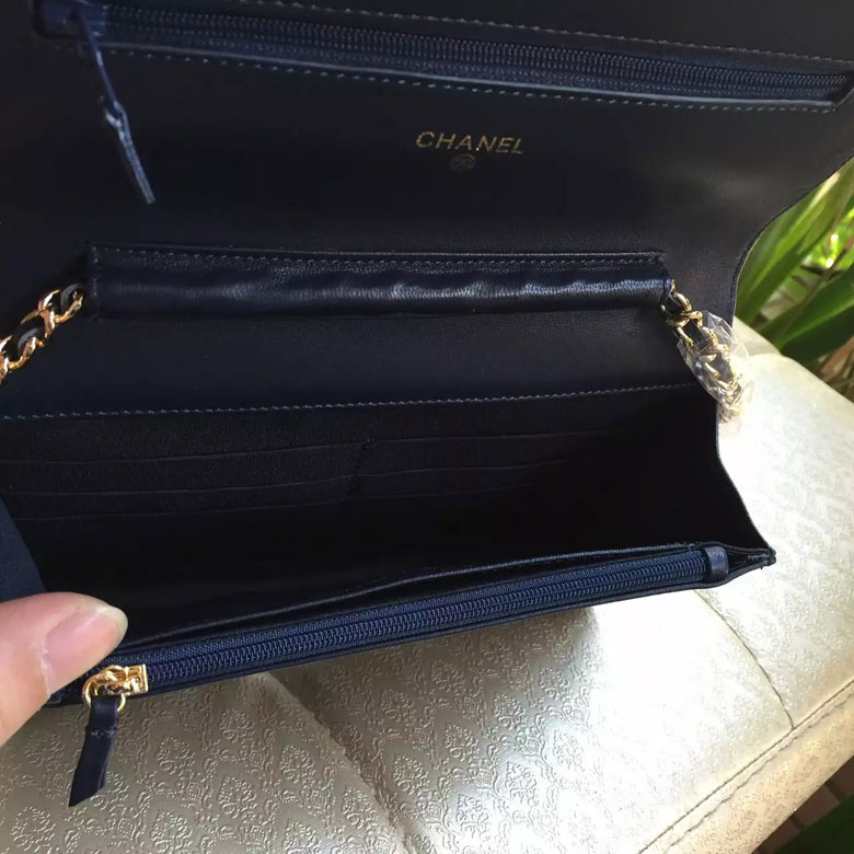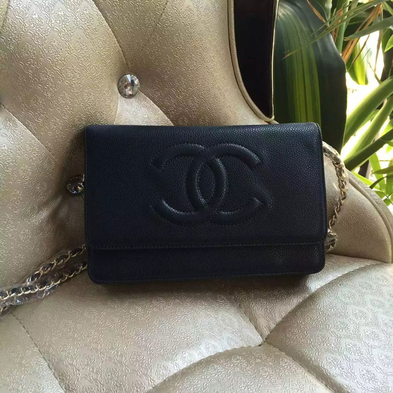 2016 Chanel WOC A33814 Blue Original Caviar Leather Mini Flap Bag Gold