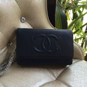 2016 Chanel WOC A33814 Blue Original Caviar Leather Mini Flap Bag Silver