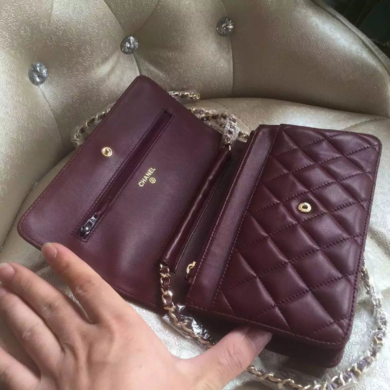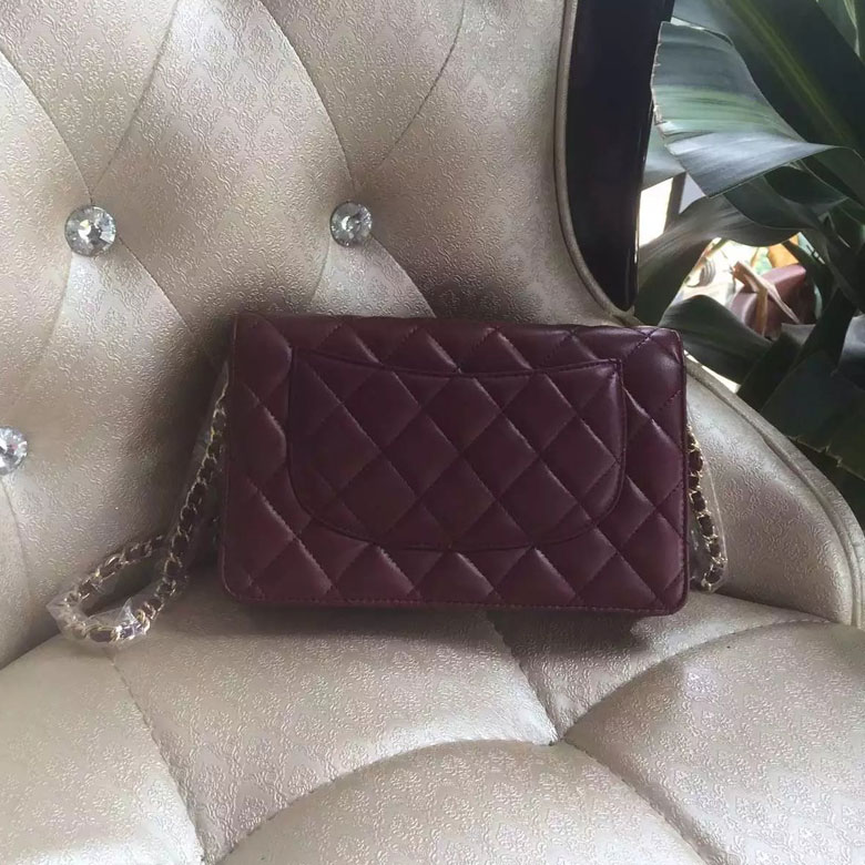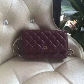 2016 Chanel WOC A33814 Burgundy Original Sheepskin Leather Mini Flap Bag Gold