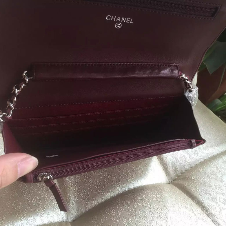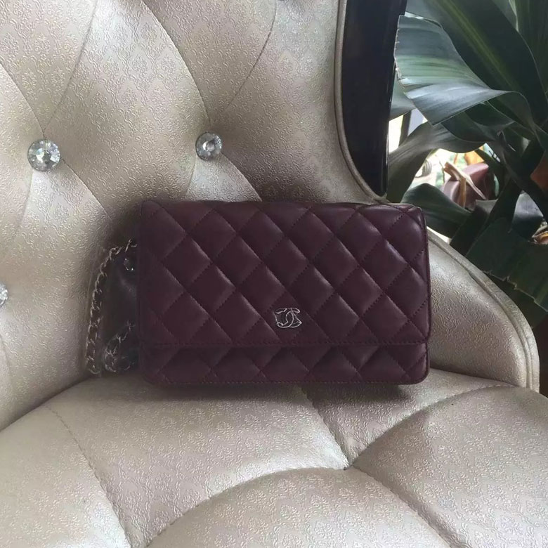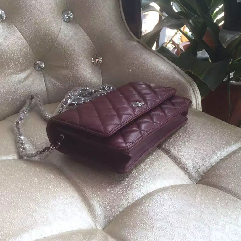 2016 Chanel WOC A33814 Burgundy Original Sheepskin Leather Mini Flap Bag Silver