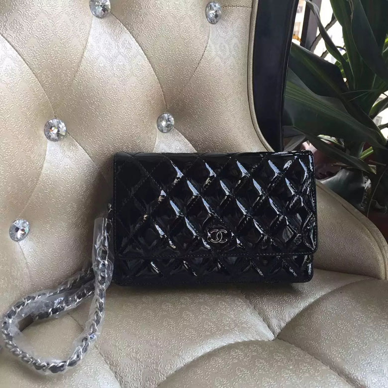 2016 Chanel WOC mini Flap Bag Black Original Patent leather A33808