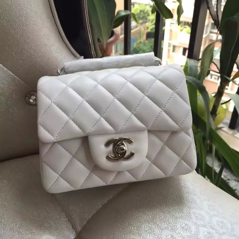 2016 Chanel mini Classic Flap Bag White Original Sheekskin leather A1115 Silver