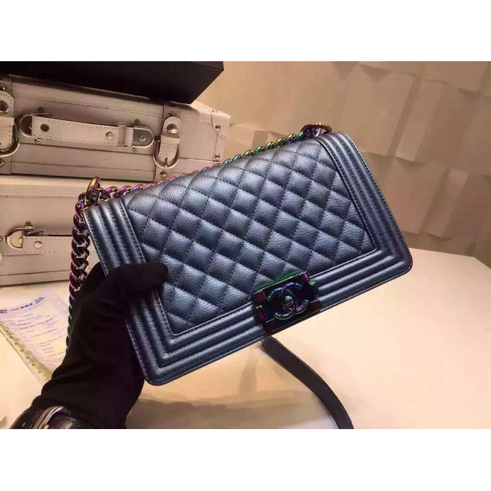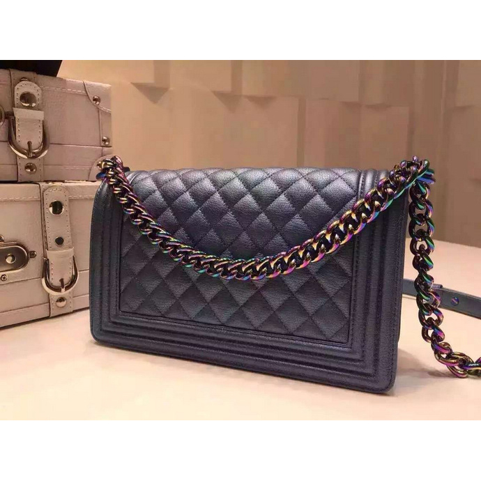 2016 LE Boy Chanel Flap Shoulder Bag Original Deer Leather A67086 Blue