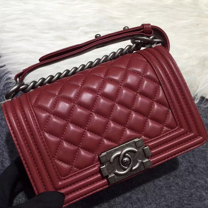 2016 LE Boy Chanel Flap Shoulder Bag Original Sheepskin Leather A67085 Claret