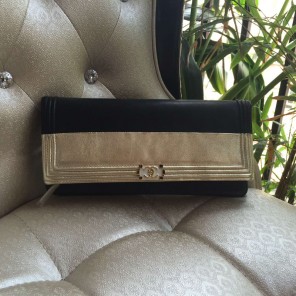 2016 Le Boy Chanel Clutch Original Sheepskin Leather A80488 Black&Gold