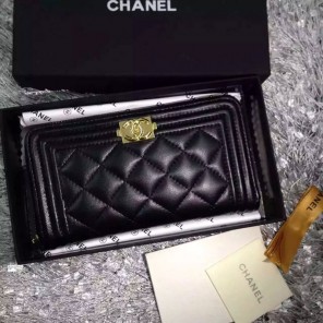 2016 Le Chanel Matelasse Zip Around Wallet Original Leather A50071 Black