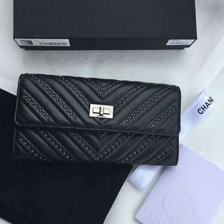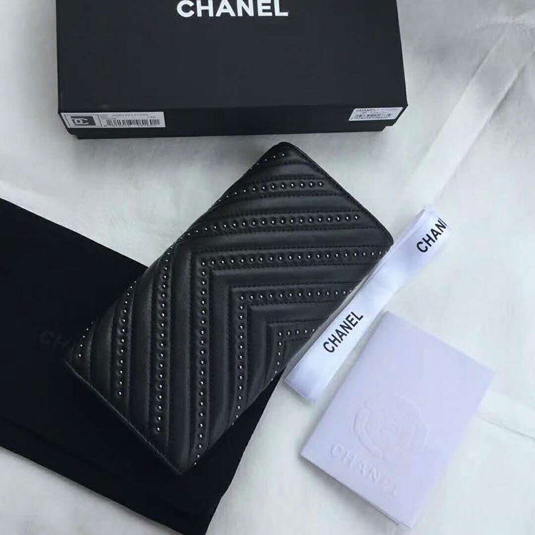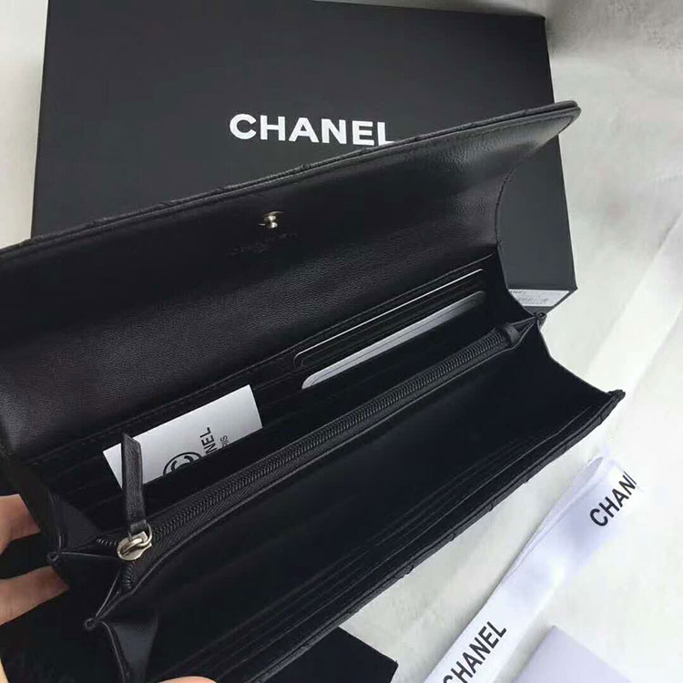 2017 Chanel Bi-Fold Wallet Original Lambskin leather A7065 Black