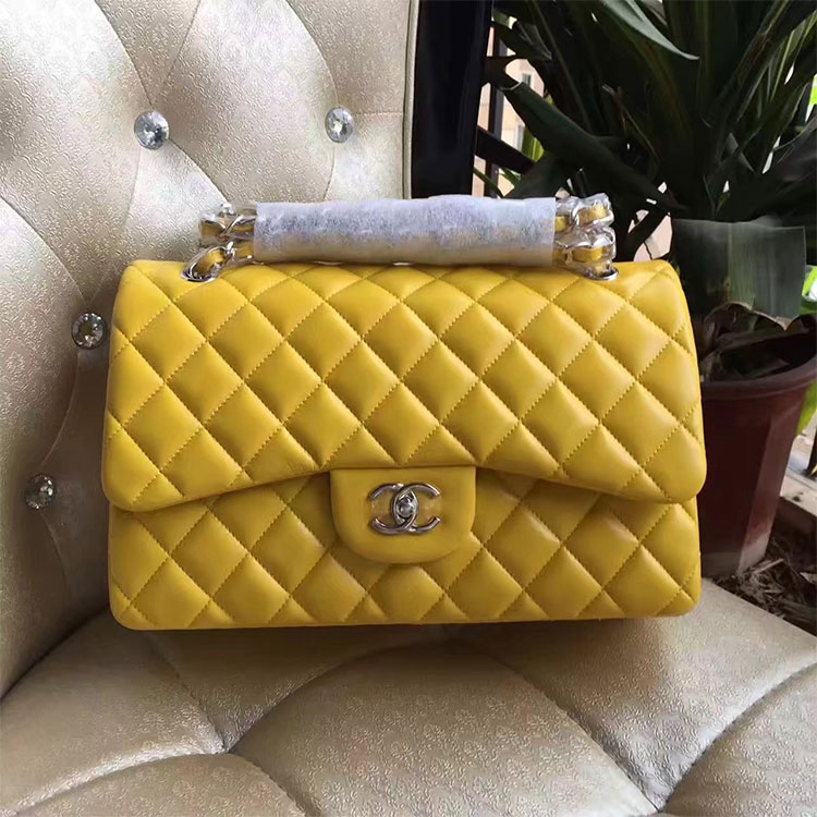 2017 Chanel Classic Flap Bag 1113 Yellow Original Sheekskin leather Silver Hardware