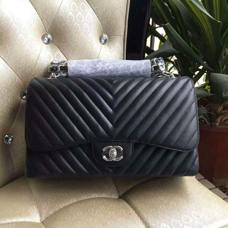 2017 Chanel Classic Flap Bag Black Original Leather 1112 Silver hardware