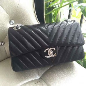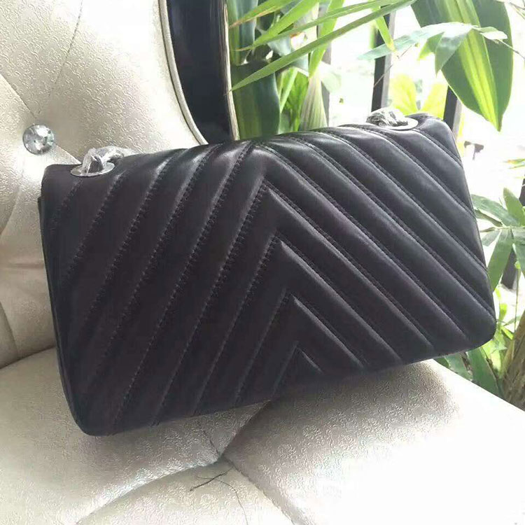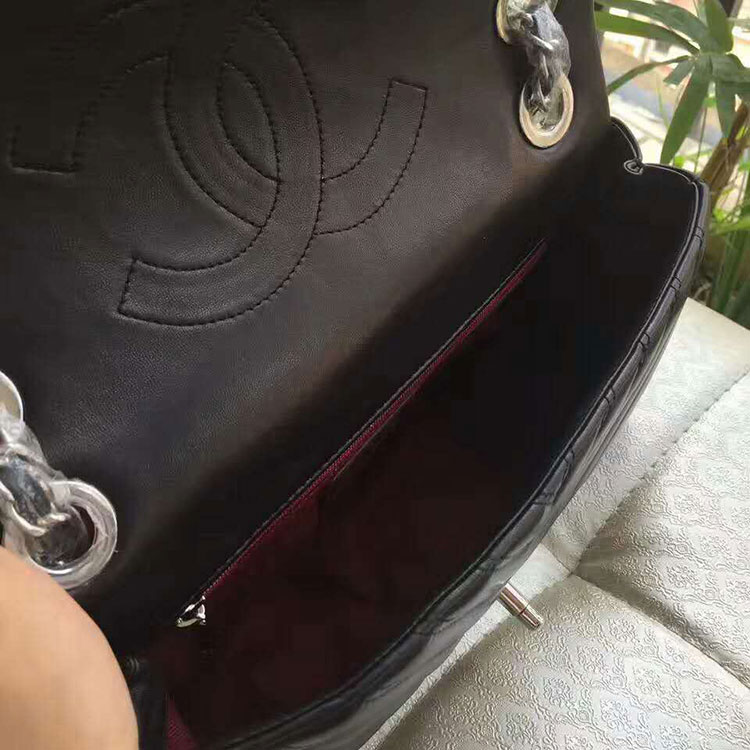 2017 Chanel Classic Flap Bag Black Original Leather A6700 Silver hardware