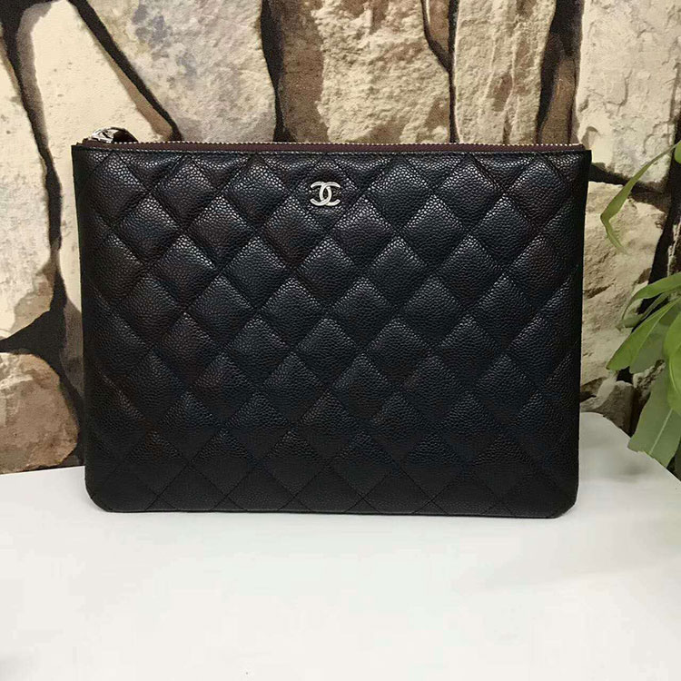 2017 Chanel Clutch Original Caviar Leather A84025 Black Silver