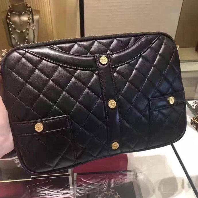 2017 Chanel Flap Bag Original Lambskin Leather A91386 Black Size: W26 x H20 - Original Lambskin Leather - Gold hardware - Gold chain shoulder strap with leather - Top zip closure - Inside zip pocket Product ID: A91386 Color: Black 2017 Chanel Flap Bag comes with: Chanel box, serial numbers, care booklet,dust bag,Card, tag