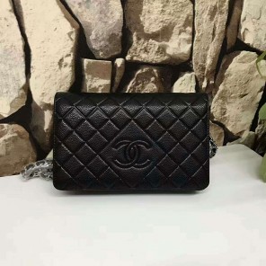 2017 Chanel Latest WOC A80697 Black Original Leather Mini Bag Silver