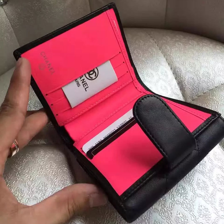 2017 Chanel Matelasse Tri-Fold Wallet Original Leather A50099 Black