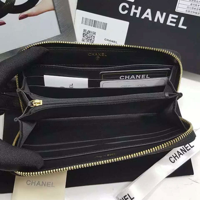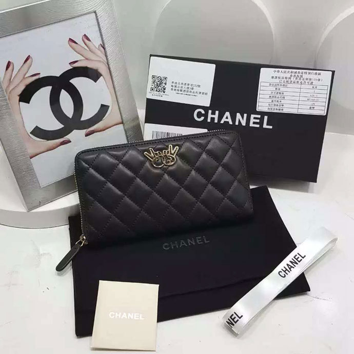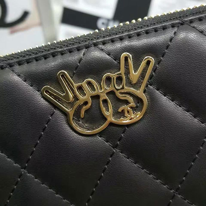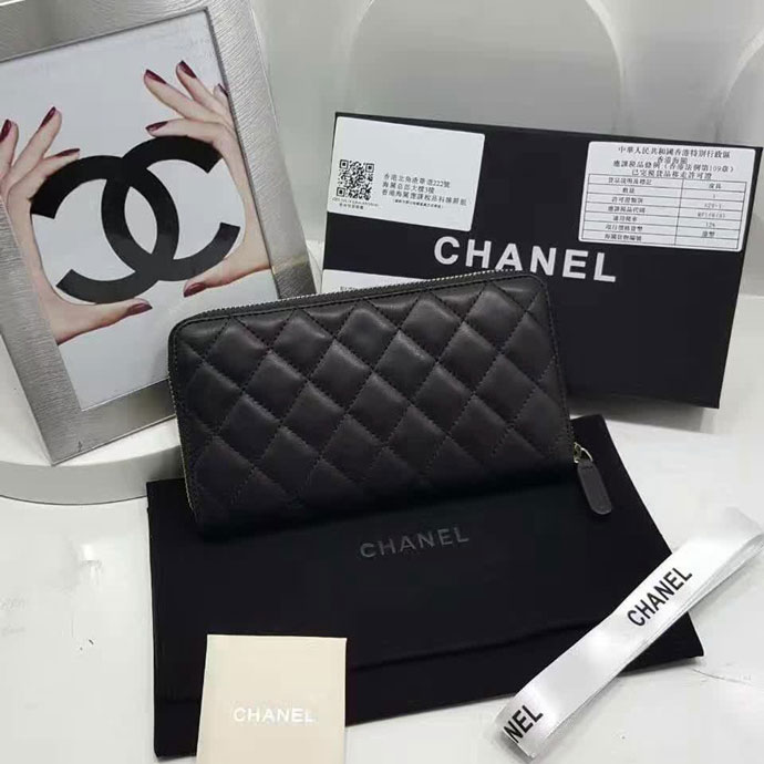 2017 Chanel Matelasse Zip Around Wallet Black Original Sheepskin leather A32256 Gold