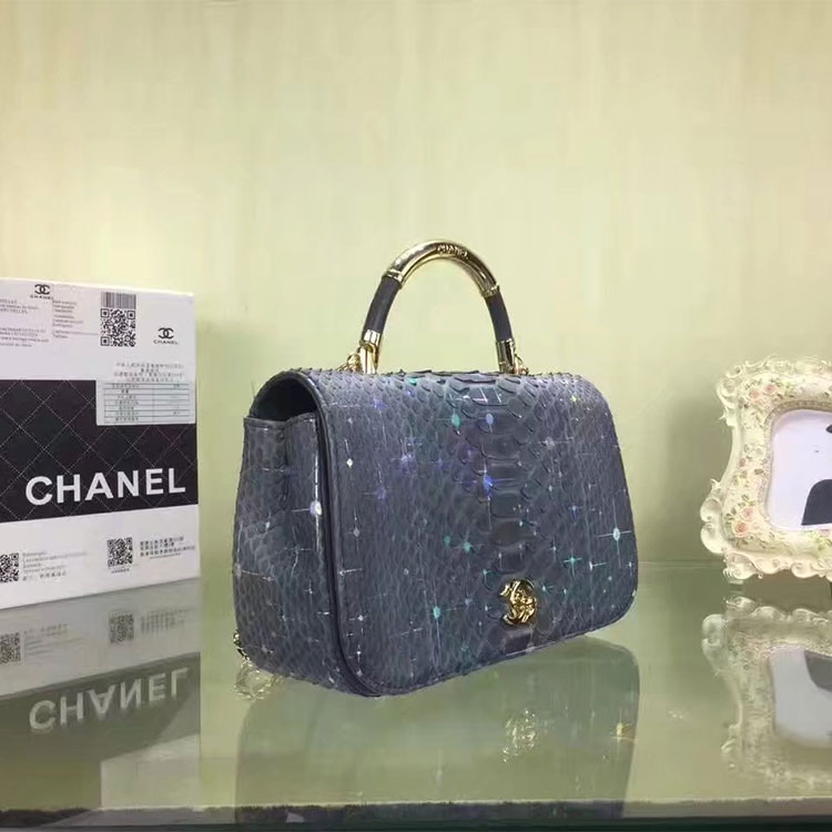 • 2017 Chanel Medium Shoulder Tote bag Original Python Leather A90024 Gold hardware