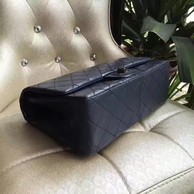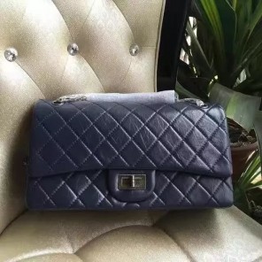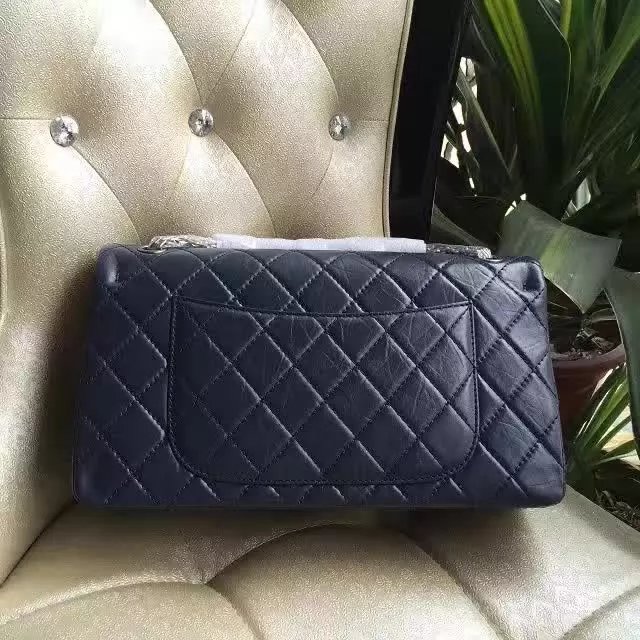 2017 Chanel Original Blue Glazed Crackled Leather Classic Flap Bag A227 Silver