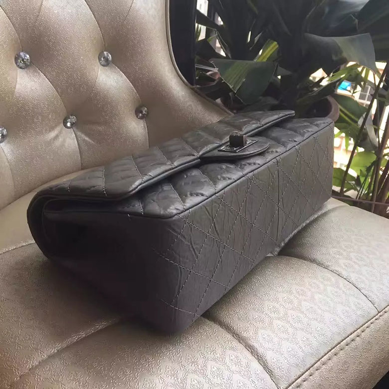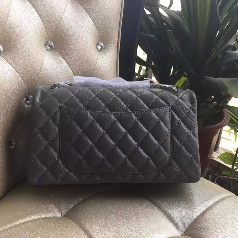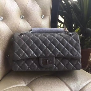 2017 Chanel Original Grey Glazed Crackled Leather Classic Flap Bag A227 Silver