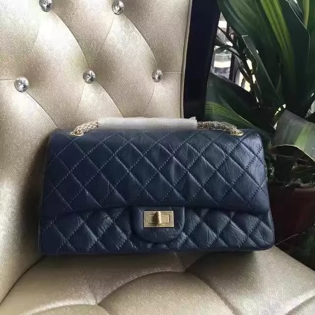 2017 Chanel Original Royalblue Glazed Crackled Leather Classic Flap Bag A227 Silver