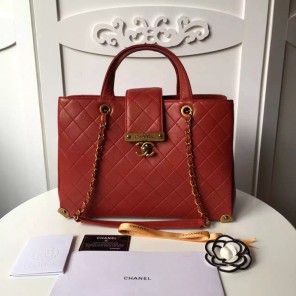 2017 Chanel Shoulder Tote Bag Snake Leather A95145 Red