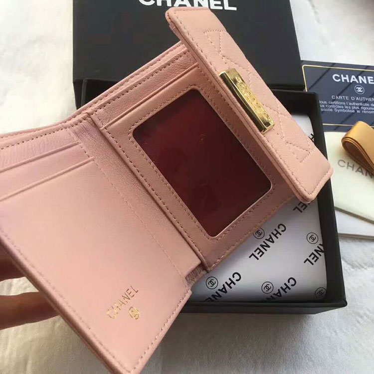 2017 Chanel Tri-Fold Wallet Original Lambskin Leather A84298 Gold Hardware