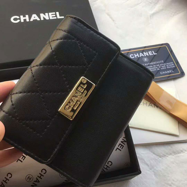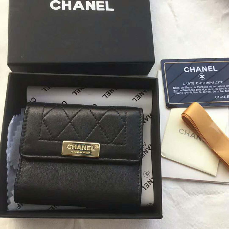 2017 Chanel Tri-Fold Wallet Original Lambskin Leather A84298 Gold Hardware