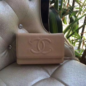 2017 Chanel WOC A33814 Apricot Original Caviar Leather Mini Flap Bag Gold