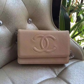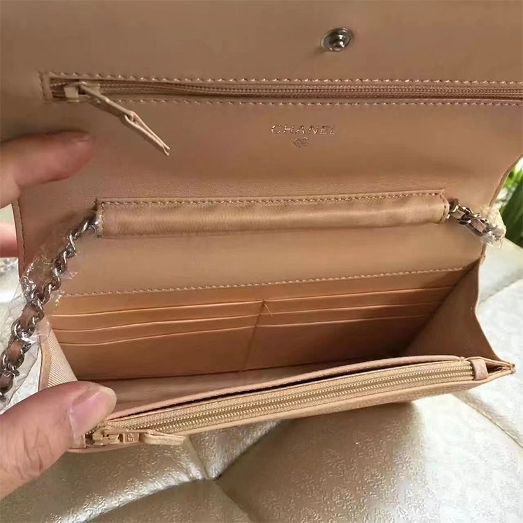 2017 Chanel WOC A33814 Apricot Original Caviar Leather Mini Flap Bag Silver