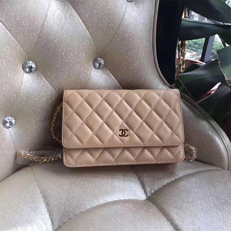 2017 Chanel WOC A33814 Apricot Original Lambskin Leather Mini Flap Bag Gold