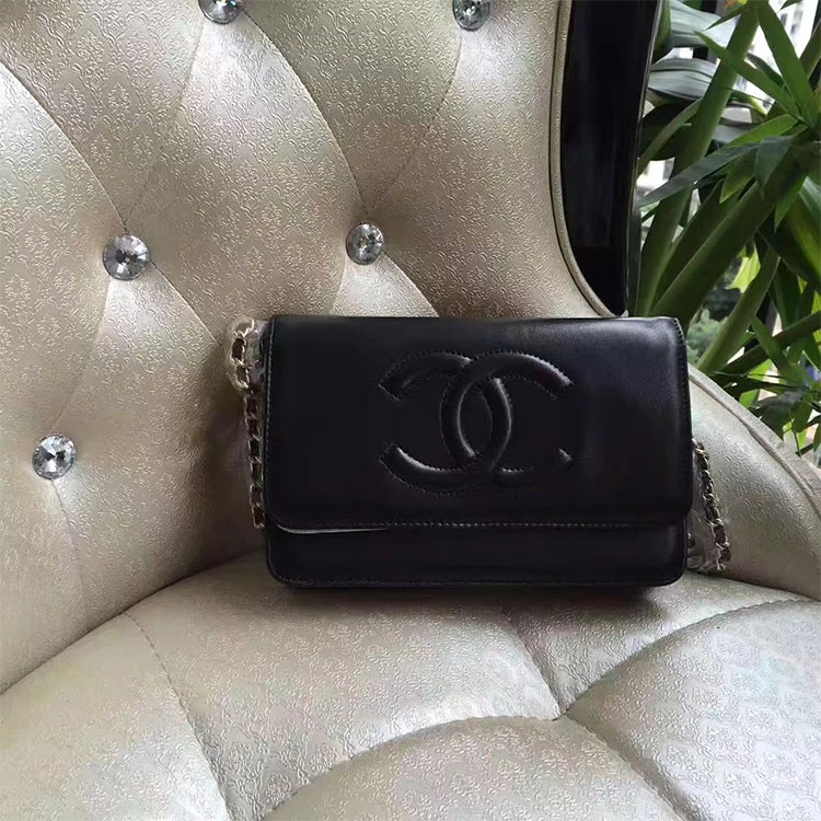 2017 Chanel WOC A33814 Black Original Lambskin Leather Mini Flap Bag Gold