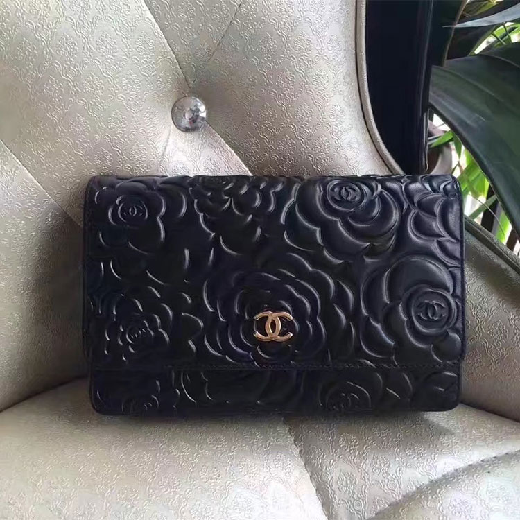 2017 Chanel WOC A33814 Black Original Lambskin Leather Mini Flap Bag Gold