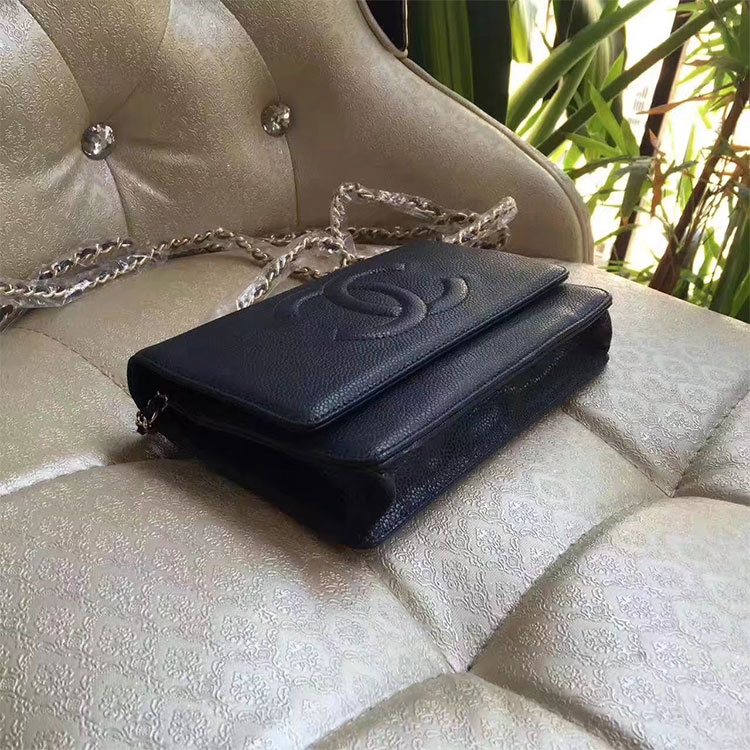 2017 Chanel WOC A33814 Blue Original Caviar Leather Mini Flap Bag Gold