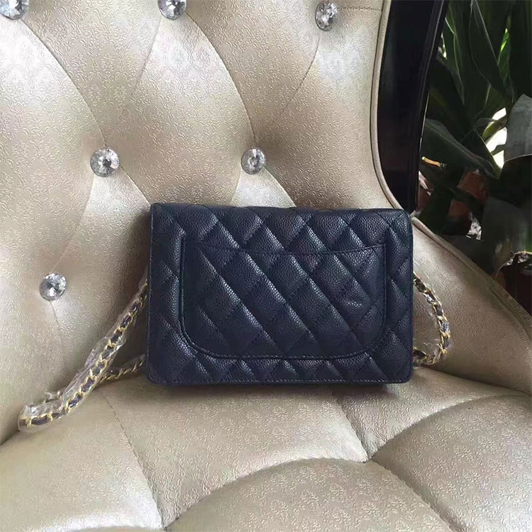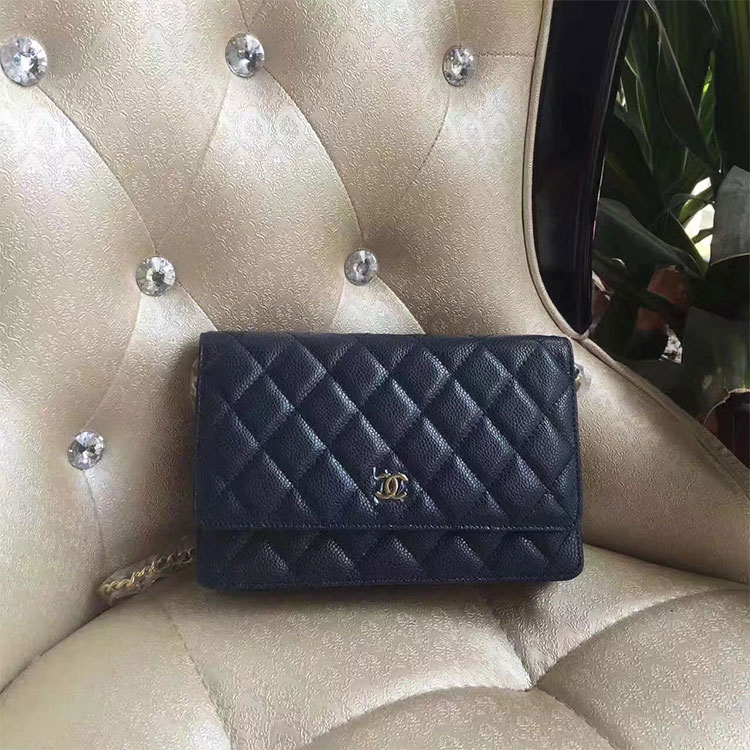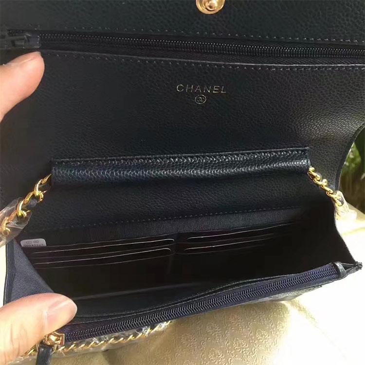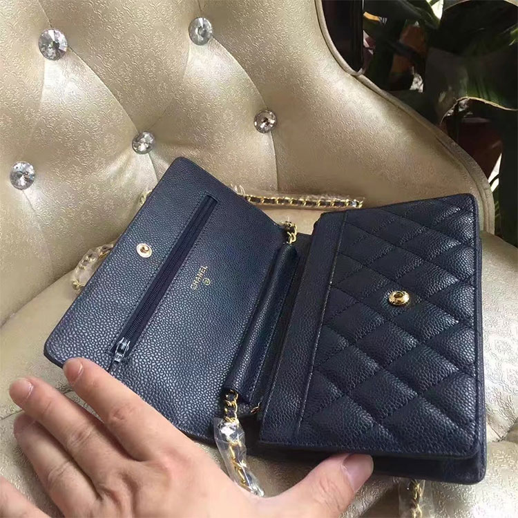 2017 Chanel WOC A33814 Blue Original Caviar Leather Mini Flap Bag Gold