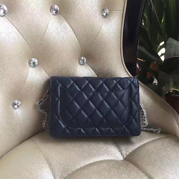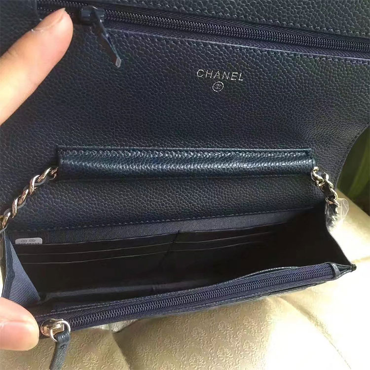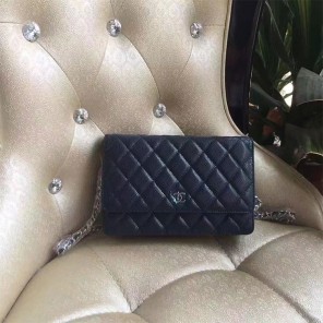 2017 Chanel WOC A33814 Blue Original Caviar Leather Mini Flap Bag Silver