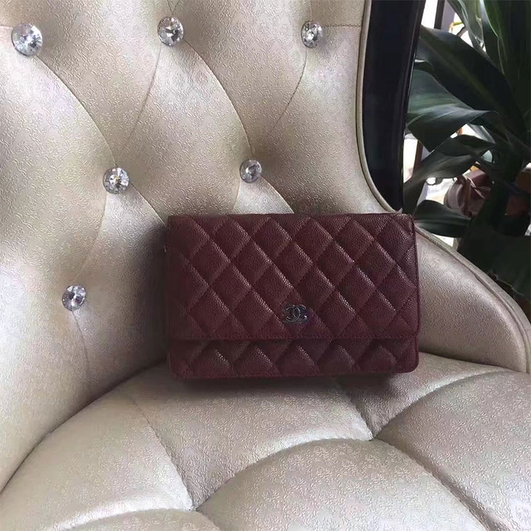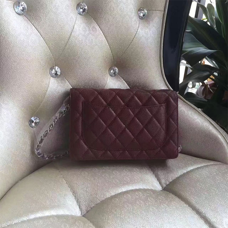 2017 Chanel WOC A33814 Burgundy Original Caviar Leather Mini Flap Bag Silver