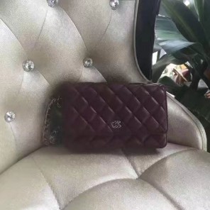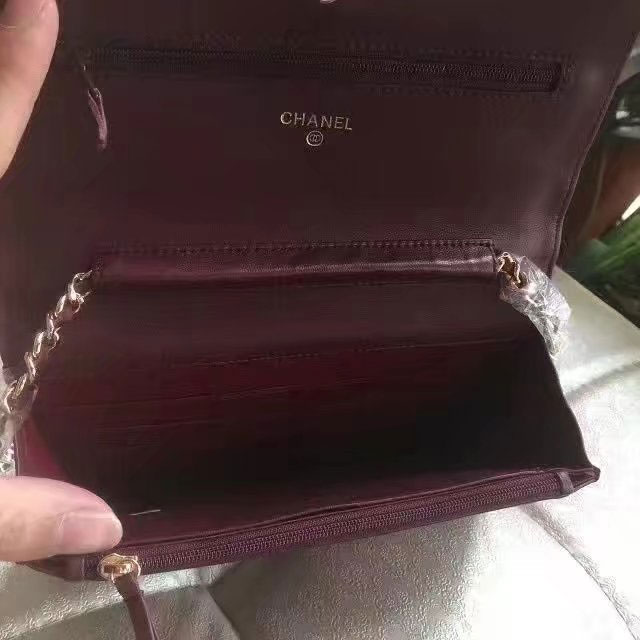 2017 Chanel WOC A33814 Burgundy Original Lambskin Leather Mini Flap Bag Gold