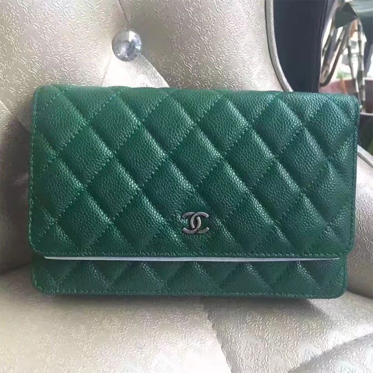 2017 Chanel WOC A33814 Green Original Caviar Leather Mini Flap Bag Silver