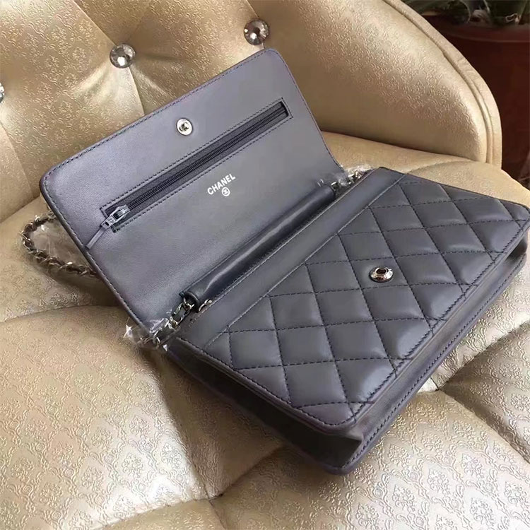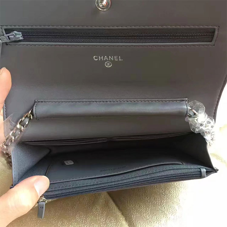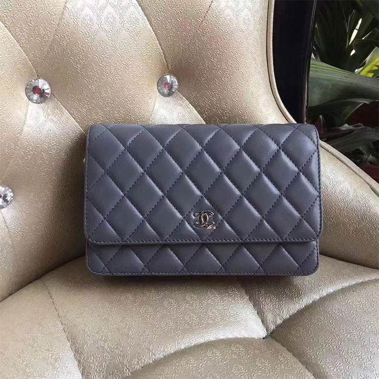 2017 Chanel WOC A33814 Grey Original Lambskin Leather Mini Flap Bag Silver