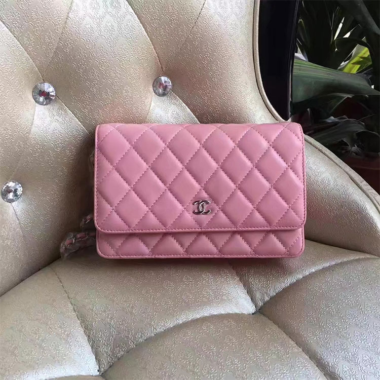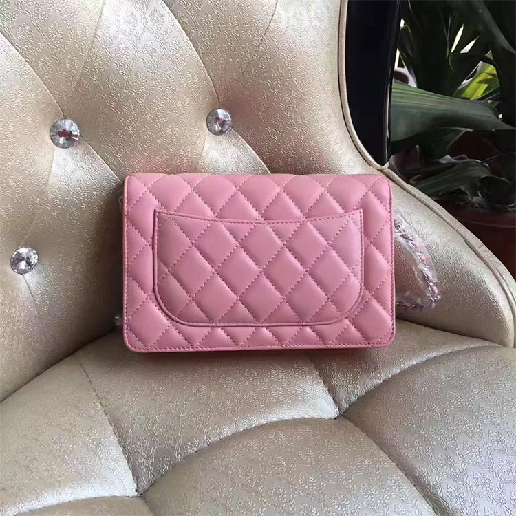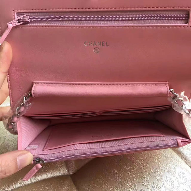 2017 Chanel WOC A33814 Pink Original Lambskin Leather Mini Flap Bag Silver
