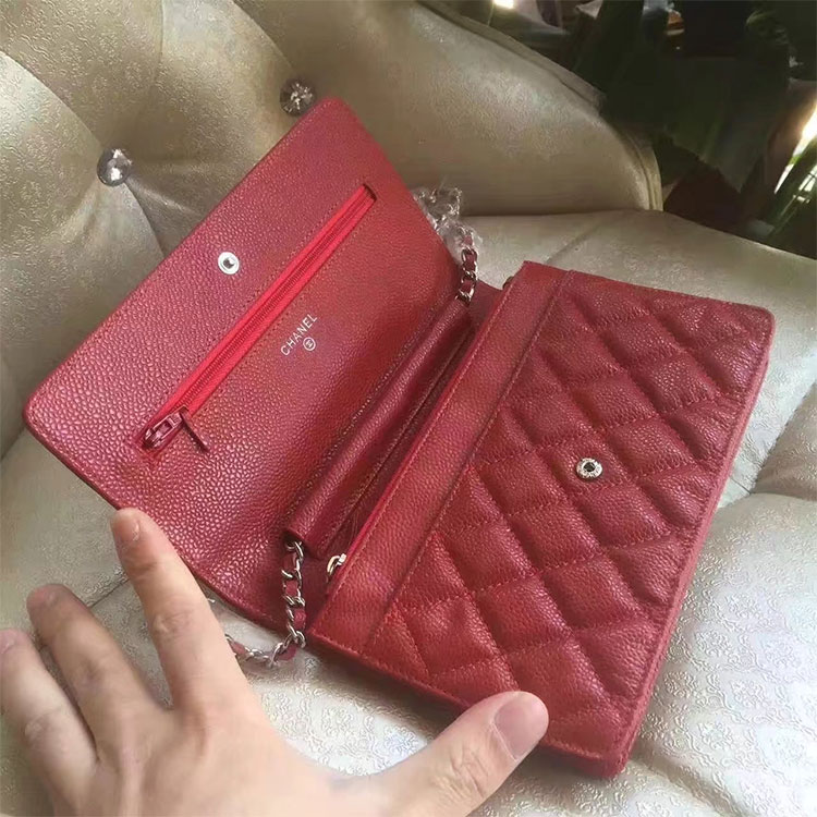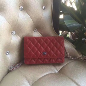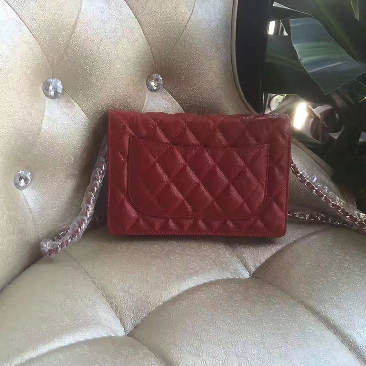 2017 Chanel WOC A33814 Red Original Caviar Leather Mini Flap Bag Silver